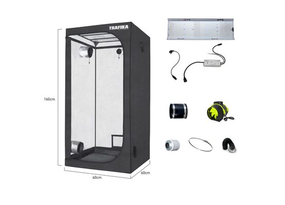 Das Trafika Growtent 60 bildet die Basis dieses Komplettsets und bietet ideale Bedingungen für Ihre Indoor-Zucht. Mit den Abmessungen 60 × 60 × 160 cm passt es perfekt in jeden Raum und eignet sich hervorragend für Einsteiger und erfahrene Grower.