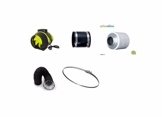 Dieses professionelle Abluftset bietet alles, was Sie für eine zuverlässige Luftführung in Ihrer Growbox benötigen. Mit bewährten Komponenten von Garden HighPro und Prima Klima erhalten Sie eine kostengünstige und effiziente Lösung für optimale Luftzirkulation und Geruchskontrolle.