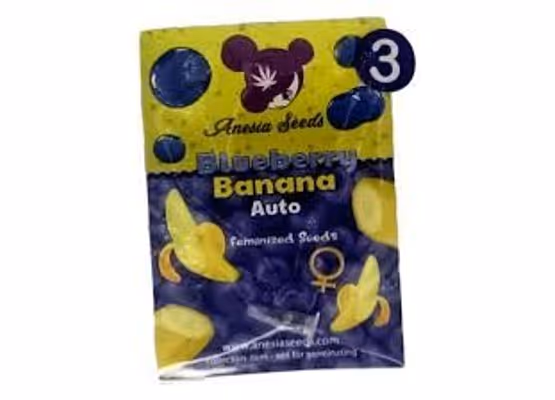 Auto Blueberry Banana von Anesia Seeds ist eine mostly Indica Autoflower mit ca. 22% THC, fruchtigem Banana‑Blueberry‑Aroma und kompakter Wuchs. Vom Samen bis zur Ernte ca. 10 Wochen, mit Erträgen bis 500 g/m² indoor bzw. 250 g pro Pflanze outdoor.