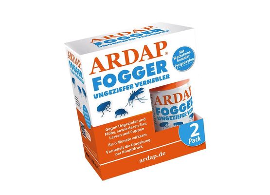 Der Ardap® Fogger wird zentral und aufrecht auf einem erhöhten, mit Zeitungspapier abgedecktem Platz gestellt (z.B. Tisch oder Stuhl). Der Sprühknopf wird niedergedrückt, bis er einrastet. Raum für 2 Stunden verlassen und Tür(en) schließen. Anschließend mindestens eine Stunde lüften. Der Inhalt des Ardap Foggers entleert sich binnen weniger Minuten und ist ausreichend für bis zu 30m² . Eine Entfernung nicht mehr gewünschter Mittelbeläge auf Oberflächen ist durch Abwaschen mit handelsüblichen, wässrigen Allzweckreinigern möglich.