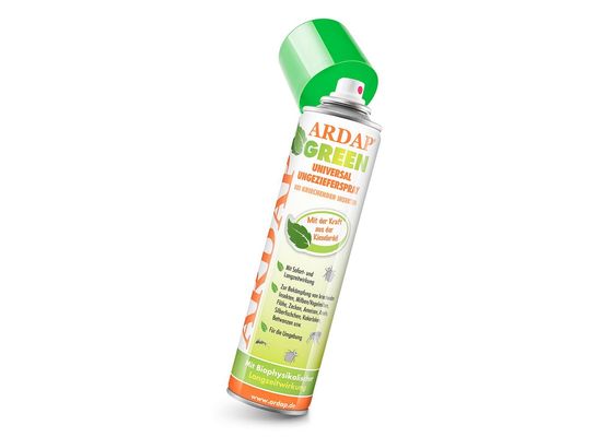 Ardap® Green Ungezieferspray wirkt gegen kriechende Insekten, Milben/Vogelmilben, Flöhen, Zecken, Ameisen, Asseln, Silberfischchen, Kakerlaken, Bettwanzen usw. in Kellern, Ställen, im Garten, Lager und in Wohnräumen. ARDAP Green Ungezieferspray hat eine starke dehydrierende (austrocknende) Wirkung auf kriechende Insekten. Durch den Kontakt mit dem Wirkstoff stauben sich die Schadinsekten ein und verenden innerhalb kurzer Zeit.