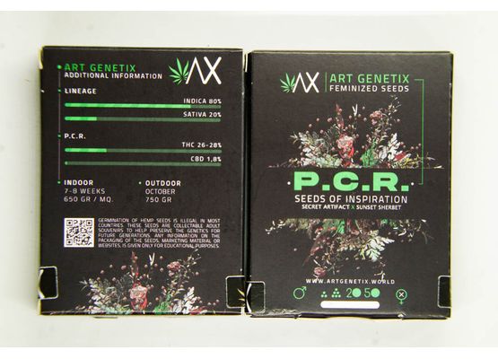 P.C.R. von Art Genetix kombiniert Secret Artifact (Mutter) mit Sunset Sherbet (Reversal) und ist zu 80% Indica und 20% Sativa. 🌱 Der Wuchs ist kompakt, stark verzweigt und mit sehr kurzen Internodien, was eine platzsparende Kultur ermöglicht. 🌿 Die Blüte dauert 7–8 Wochen und endet in dichten, stark bereiften Blüten. ❄️ Das Terpenprofil wirkt moosig mit klaren Noten von Minze und Eukalyptus, insgesamt sehr frisch wie Bergluft. 🌲😮💨 Die Wirkung wird als intensiv, lang anhaltend entspannend und deutlich beruhigend beschrieben. 😌🛋️ Aufgrund der starken Harzproduktion eignet sich die Sorte gut für Extraktionen. 🧪✨ Die kompakte Struktur reagiert gut auf LST, Topping oder ein kleines SCROG. 🔧🪴 Die kurzen Internodien begünstigen gleichmäßige Blütenstände, was eine effiziente Schnitt- und Trockenarbeit erleichtern kann. ✂️📦 Ein moderates Nährstoffregime und gute Luftzirkulation helfen, die frische Aromatik zu bewahren. 💨🌬️ P.C.R. kann in verschiedenen Umgebungen kultiviert werden; eine stabile Umgebung mit kontrollierter Feuchte reduziert das Risiko dichter Blüten. 🛡️🌡️ Im Freien bevorzugt die Sorte einen warmen, möglichst trockenen Spätsommer. ☀️🍂 Die Erträge werden vom Züchter mit bis zu 650 g/m² angegeben. 📈📦 Insgesamt ist P.C.R. eine unkomplizierte, kompakte Linie mit klarem, frischem Profil und körperbetonter Ruhe. 🧘♂️🌙