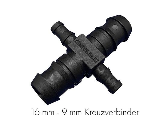 Der AutoPot 16-9mm Kreuzverbinder ist ein unverzichtbares Fitting für größere AutoPot Bewässerungssysteme. Saubere Reduktion von 16 mm Hauptleitungen auf 9 mm Zweigleitungen ermöglicht eine individuelle Anordnung der einzelnen Module. 🌿