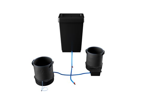 Ein komplettes Bewässerungssystem für professionelle Pflanzenkulturen – zwei 20-Liter FlexiPots kombiniert mit einem 47-Liter Wassertank und allen notwendigen Komponenten für automatische, wartungsarme Bewässerung. 🌱