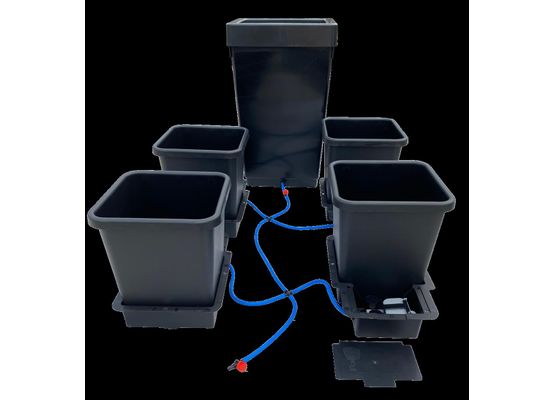 Lieferumfang: 4x Wannen mit Deckel, 4x 15L Töpfe, 4x AQUAvalve5, 1x 47L Tank mit Deckel, 1x Filter, 2x Cross-Verbinder, 4x T-Verbinder, 2x Inline-Hähne, 4x Root Control Scheiben, 4m Schlauch, 1x Top Hat Grommet