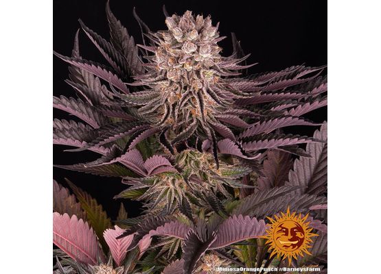 Mimosa x Orange Punch von Barney’s Farm vereint Mimosa Evo und Orange Punch zu einer kompakten, ertragstarken Sorte mit intensiven Orange-/Zitrusnoten. 55–60 Tage Blüte und bis zu 30% THC.