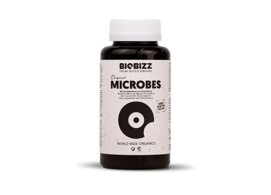 100% organische Trockenmischung nützlicher Mikroorganismen zur Förderung kräftiger Wurzelsysteme in Erde.