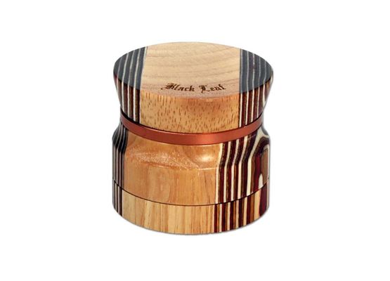 Der Black Leaf Grinder besticht durch sein durchdachtes Design im Ethnolook. Die Kombination aus hochwertigem Ahornholz und robustem Aluminium schafft eine perfekte Balance zwischen angenehmer Haptik und funktionaler Robustheit. Das Black Leaf Logo verleiht dem Grinder eine stilvolle Note, während die beige Farbgebung zeitlos wirkt.
