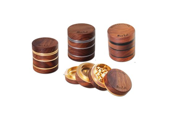 Ein hochwertiger 4-teiliger Grinder, der Nussholz und eloxiertes Aluminium elegant kombiniert. Kompakt, langlebig und in vielfältigen Designs erhältlich. 🌿