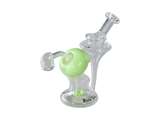 Effektiv Dabben mit der außergewöhnlichen Dab Rig von Black Leaf®. Der handliche und stabile Glasbubbler hat eine Recyclefunktion. Dabei wird das Bongwasser durch das Röhrchen in eine andere Kammer gezogen, um anschließend wieder zurück in die Hauptkammer zu fließen. Während des Rückflusses wird das Wasser jedes Mal wieder mit frischem Sauerstoff angereichert, also recycelt. Und gleichzeitig setzen sich unerwünschte Nebenstoffe des Rauchs an der Pfeifenwand ab.