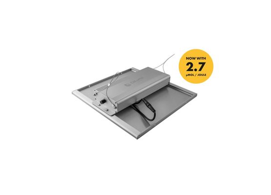 Dank passiver Kühlung arbeitet das System geräuschlos und erzeugt weniger Abwärme als herkömmliche HPS-Lampen. Die PPF liegt bei 375 µmol/s für eine gleichmäßige und intensive Ausleuchtung.