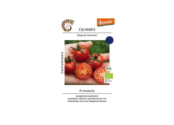 Cocktailtomate Primabella ist eine samenfeste Stabtomate mit leuchtend roten, ca. 30 g schweren Früchten, die durch ihren aromatisch ausgewogen süß-säuerlichen Geschmack und außergewöhnliche Resistenz gegen Kraut- und Braunfäule überzeugt.