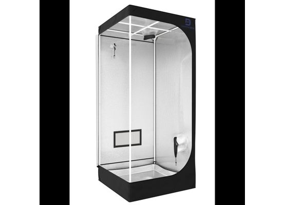 Das DiamondBox Silver Line SL70 ist ein hochwertiges Grow-Zelt mit den Abmessungen 70x70x200 cm und einem Volumen von 0,94 Kubikmetern. 🌱 Die stabile Konstruktion basiert auf pulverbeschichteten Stahlrohren mit 16 mm Durchmesser, die durch verstärkte Kunststoff-Steckverbindungen in den Ecken zusammengehalten werden. Das Zelt verfügt über eine robuste, lichtdichte und luftdichte schwarze Außenhülle, die perfekten Schutz vor Lichtleckagen bietet.