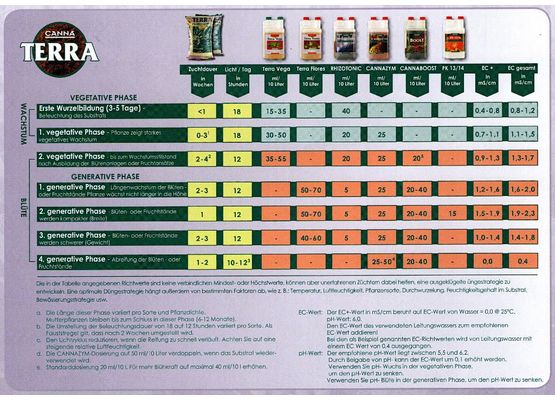 Düngeschema von Canna für die Terraserie im Postkartenformat