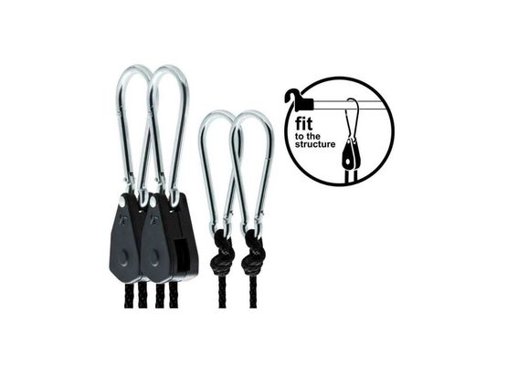 Die GHP Aufhängung Pro Set mit großem Karabiner ist ein professionelles Seilratschen-System für den Indoor-Anbau. Es ermöglicht eine stufenlose und präzise Höhenverstellung der Beleuchtung oder von Aktivkohlefiltern in Growzelten und Anbauräumen. Jede Einheit besteht aus stark belastbaren Metallkarabinern und robusten Metall-Ratschen, die bis zu 68 kg Gewicht sicher tragen können 🔒. Das 1,5 m lange Seil bietet großzügige Verstellwege, sodass Lampen und Filter optimal positioniert werden können 🌞.