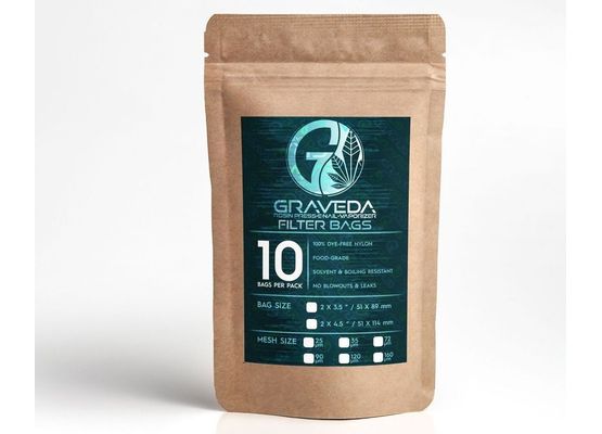 Die Graveda Rosin Bags bestehen aus 100% reinem, zertifiziertem medizinischem Nylon nach dem anspruchsvollen Ph. Eur. 3.1.11 Standard. Dies garantiert höchste pharmazeutische und medizinische Anforderungen bezüglich Reinheit und Lebensmittelsicherheit. Das hochfeste Material ist speziell für extreme Temperaturen ausgelegt und hält ohne Probleme bis zu 220°C stand – ideal für die Verwendung mit professionellen Rosin-Pressen.