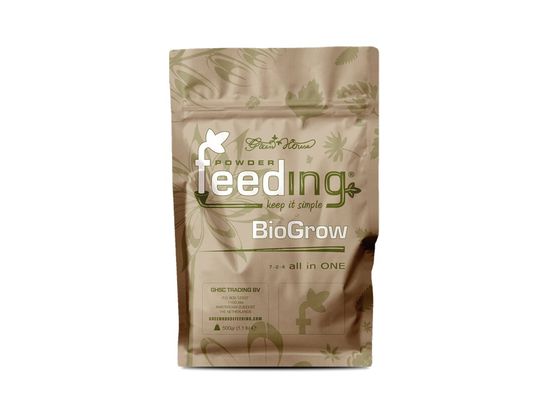 Green House Feeding BioGrow ist ein vollständiger organischer Dünger in Pulverform mit NPK 7-2-4, speziell entwickelt für die vegetative Wachstumsphase schnellwachsender Pflanzen. Diese sorgfältig ausgewählte Mischung natürlicher Materialien enthält Knochenmehl, Gerstenmalzkeime, Hornmehl, Federmehl, Zuckerrübenvinasse und Rapsschrot.