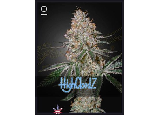 HighCloudZ ist eine Kreuzung aus WatermelonZ × Cloud Walker und liefert ein ausgeglichenes 50/50‑Profil mit stark fruchtigem, sehr süßem Aroma. Die Blüten sind kompakt, harzig und weisen große Kelche auf; Geruchskontrolle ist wegen der intensiven Süße empfehlenswert. 🍬