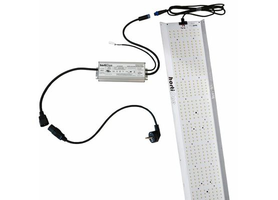Die hortiONE 600 V3 LED Grow Light ist ein robustes und effizientes Panel mit 220 Watt Verbrauch und einem PPF von 600 µmol/s. Das extra lange 940 mm LED-Board ist mit einem 45° geneigten Reflektor ausgestattet, der eine diffuse Beleuchtung und eine gleichmäßige Lichtverteilung auf großen Kultivierungsflächen gewährleistet 😃.
