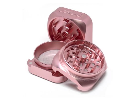 Der Krush Kube 3.0 Gold Rose hebt sich durch sein innovatives würfelförmiges Design deutlich von herkömmlichen runden Grindern ab. Diese kubische Form bietet einen verbesserten Halt und bessere Kontrolle beim Mahlen – besonders beim Verarbeiten von dichtem oder klebrigem Material. Das hochwertige 6063 eloxierte Flugzeugaluminium verleiht dem Grinder nicht nur eine edle Gold Rose Optik, sondern garantiert auch eine langlebige und korrosionsbeständige Oberfläche. Mit 192 Gramm liegt der Grinder angenehm schwer in der Hand und vermittelt ein Premium-Gefühl. ✨