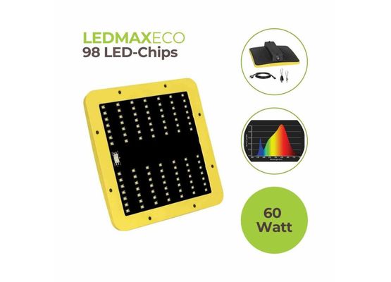 Das robuste Gehäuse mit Feuchtigkeits- und Hitzeschutz schützt die LED-Chips und die Elektronik vor Umwelteinflüssen und sorgt für eine gleichbleibende Leistung. Ausgestattet mit 98 LM82B LEDs mit einer Farbtemperatur von 3000 K und einem CRI-Wert von 90 liefert sie ein ausgewogenes Spektrum für alle Wachstumsphasen. 💡 Durch die effiziente Wärmeableitung entsteht kaum Abwärme, sodass kein zusätzliches Kühlsystem erforderlich ist und die Pflanzen vor Verbrennungen geschützt sind. Die Abmessungen von 27,45 cm x 24,7 cm x 10,75 cm und das geringe Gewicht ermöglichen eine flexible Platzierung auch in kleineren Growboxen. 📐 Garden Highpro hat mit diesem Modell ein energieeffizientes und umweltfreundliches Produkt entwickelt, das den Anforderungen moderner Indoor-Gärtner gerecht wird. Dank der kompakten Bauweise und der hochwertigen Komponenten eignet sich die LEDMAXECO 60W ideal für Hobby- und Profizüchter, die maximale Ergebnisse auf begrenztem Raum erzielen möchten. 🌿