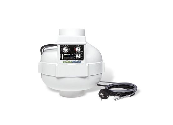 Der Prima Klima PK100EC-TC ist ein hochwertiger, temperatur- und drehzahlgeregelter Rohrventilator, der speziell für kleine bis mittelgroße Growzelte entwickelt wurde. 🌬️ Durch den integrierten ebm-papst EC-Motor und das aerodynamisch optimierte Laufrad mit rückwärts gekrümmten Schaufeln erreicht der Ventilator eine maximale Leistung von 580 m³/h bei sehr geringem Energieverbrauch. ⚡ Dank EC-Technologie lässt sich der Strombedarf im Betrieb um bis zu 50 % gegenüber herkömmlichen Abluftventilatoren reduzieren. Die Steuerung ist direkt im Gehäuse integriert, sodass Zieltemperatur, Minimal- und Maximaldrehzahl bequem voreingestellt werden können. 🌡️