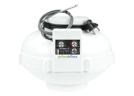 Der Prima Klima PK160EC-TC ist ein kompaktes Inline-Kanalventilator mit einem EC-Motor, das ein maximales Luftvolumen von bis zu 1180 m³/h bei einem Flanschdurchmesser von 160 mm erreicht. Dank der fortschrittlichen EC-Technologie von ebm-papst überzeugt er durch besonders niedrigen Stromverbrauch und hohe Energieeffizienz. Dabei arbeitet er extrem leise und brummfrei, selbst bei voller Leistung. Die stufenlose Temperatur- und Drehzahlregelung gewährleistet automatisch die optimale Luftförderung je nach Umgebungstemperatur.