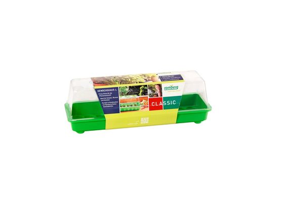 Das Gewächshaus L von Romberg ist ein kompaktes Zimmergewächshaus aus robustem PAK-freiem Kunststoff, entwickelt für die Anzucht von Kräutern, Gemüse und tropischen Kletterpflanzen. Mit seinen Maßen von 58 x 19 x 19 cm (L x B x H) passt es perfekt auf jede Fensterbank und sorgt für optimale Wachstumsbedingungen 😊. Die milchige Haube schützt vor Zugluft und fördert gleichzeitig eine gleichmäßige Wärmeverteilung. Seitliche Lüftungslöcher mit Schiebereglern ermöglichen eine individuelle Luftzirkulation und sorgen für ein gesundes Mikroklima ❤️. Der Einlegeboden ist mit Rillen versehen, damit Wasser gleichmäßig verteilt wird und Staunässe vermieden wird 🌱.
