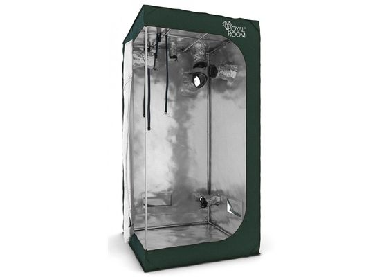 Erleben Sie professionelle Pflanzenzucht auf 1 m² mit dem RoyalRoom Classic C100 Growzelt – 100×100×200 cm, außen schwarz und innen silberreflektierend.