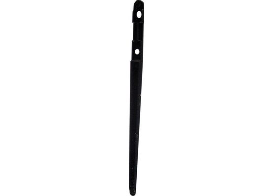 Einfacher Tropfschlauchhalter mit zwei Bohrungen für den Tropfschlauch. Der Schlauch kann und sollte so befestigt werden, dass jeder fallende Tropfen zu sehen ist. Dazu wird der Schlauch durch das obere Loch geführt und in einem lockeren Bogen durch das untere zurück. Das Ende hängt so etwas herunter und es ist leicht zu sehen, ob ein Tropfen fällt.