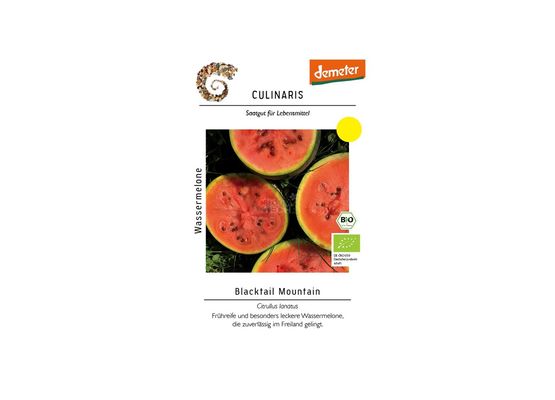 Die Wassermelone Blacktail Mountain (M11) ist eine frühreife Open-Source-Sorte mit saftig-süßem Fruchtfleisch und einem Gewicht bis zu 5 kg. Sie besticht durch hohe Trocken- und Hitzetoleranz sowie gute Kältetauglichkeit bei kalten Nächten.